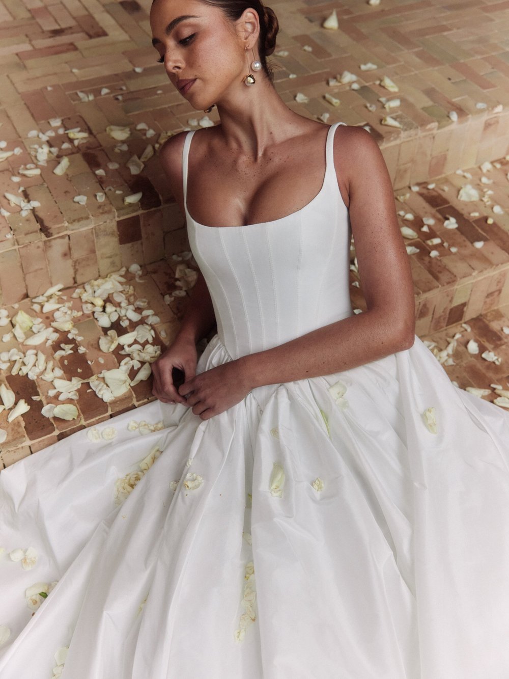 Get ready to dazzle in our crispy taffeta ball gown! The basque corset cinches at the waist, creating that coveted hourglass shape that's so in right now. With its soft square neckline, this gown brings a fresh, modern vibe to traditional elegance. Plus, our heavily boned corset with seamless straps ensures you'll be comfy and supported all day long. Choose between a zip or lace-up closure to make it totally 'you'. And hey, if you're all about that shine, go for the Protea in Dutchess satin for an extra dose of glam!