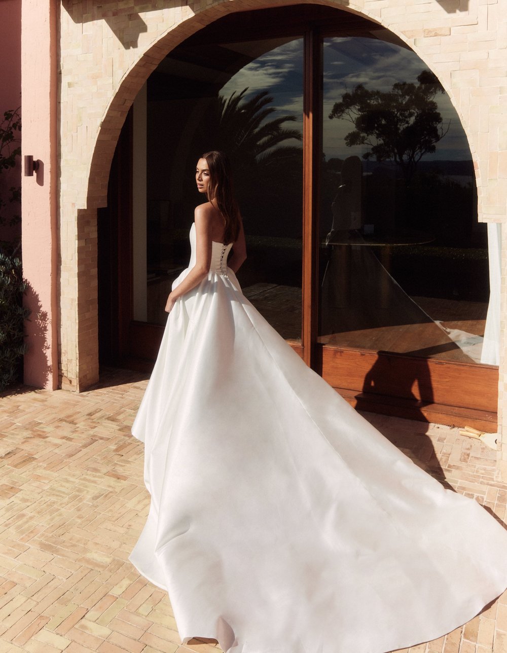 Each dress is tailor made with the option to customise to a bride’s specific requirements. Luxurious Italian satin and silk underline the uncompromising quality.