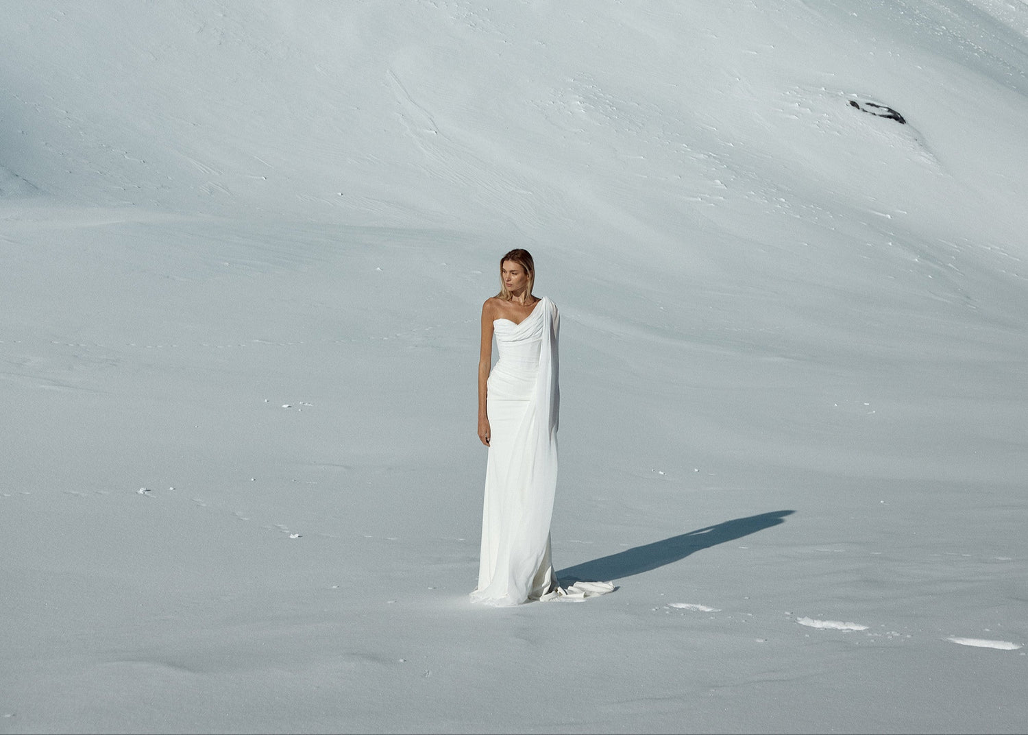 Old money aesthetic comes to life c/o Winton. A sculptural masterpiece that accentuates the curves and movement of the body, Winton features a smooth, structured bodice with off-shoulder straps. Its asymmetric skirt drapes effortlessly from the left waist and features a side split, the ultimate celebration of the female form. Crafted from a luminous duchess satin, Winton is your sartorial showstopper destined for cult-icon status.